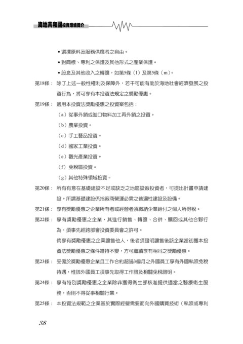 第18條: 除了上述一般性權利及保障外,若干可能有助於海地社會經濟發展之投