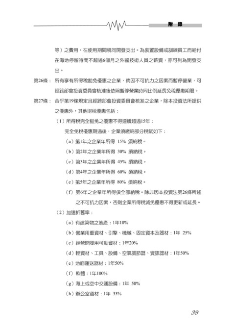第27條: 合乎第19條規定且經跨部會投資委員會核准之企業,除本投資法所提供