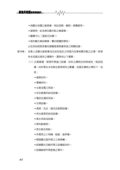 第38條: 從事上述觀光服務業或在政府指定之特區內從事相關活動之企業,除享